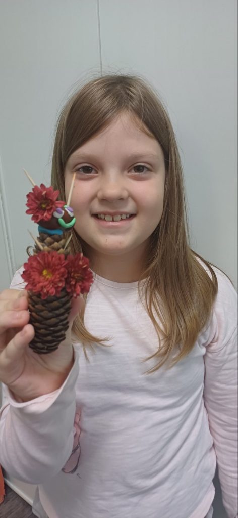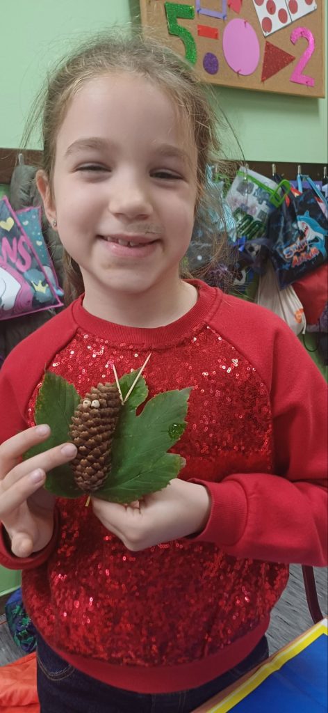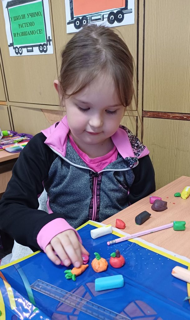 На креативној радионици „Јесен је стигла“ наши ученици првог разреда су, уз пуно маште и осмеха, правили дивне фигурице од лишћа, шишарки и других природних материјала.